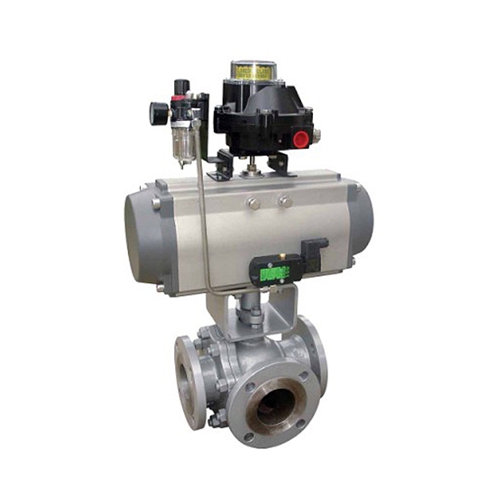 氣動三通球閥可分為L型和T型。L型三通球閥用于介質流向的切換,能使相互垂直的兩個通道連通。三通球閥一般采用兩閥座結構,亦可根據用戶要求采用四閥座結構。四閥座密封三通球閥具有造型美觀、結構緊湊合理,它不僅可實現介質流向的切換,也可使三個通道相互連通,同時也可關閉任一通道,使另外兩個通道連通,靈活控制管路中介質的合流或分流。