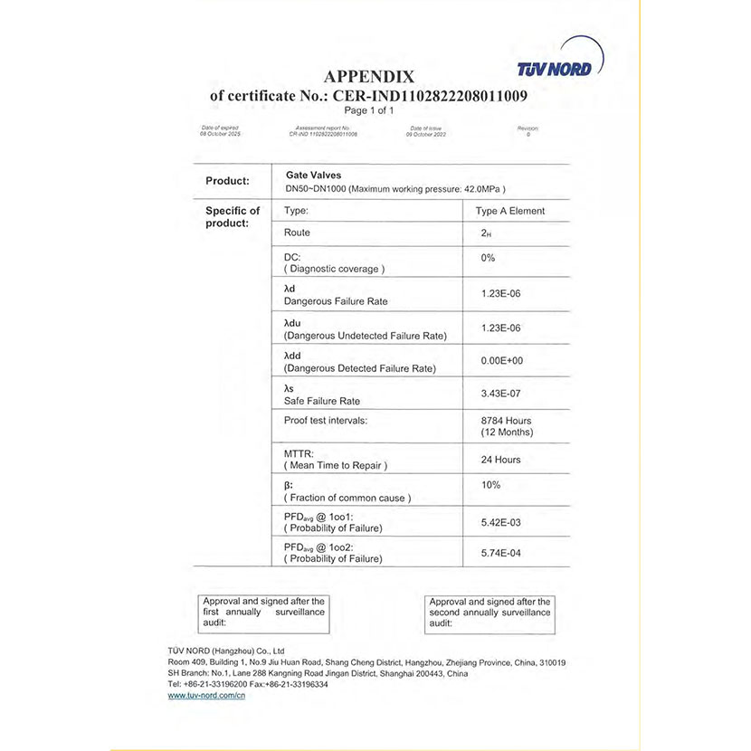 閘閥 SIL證書 2